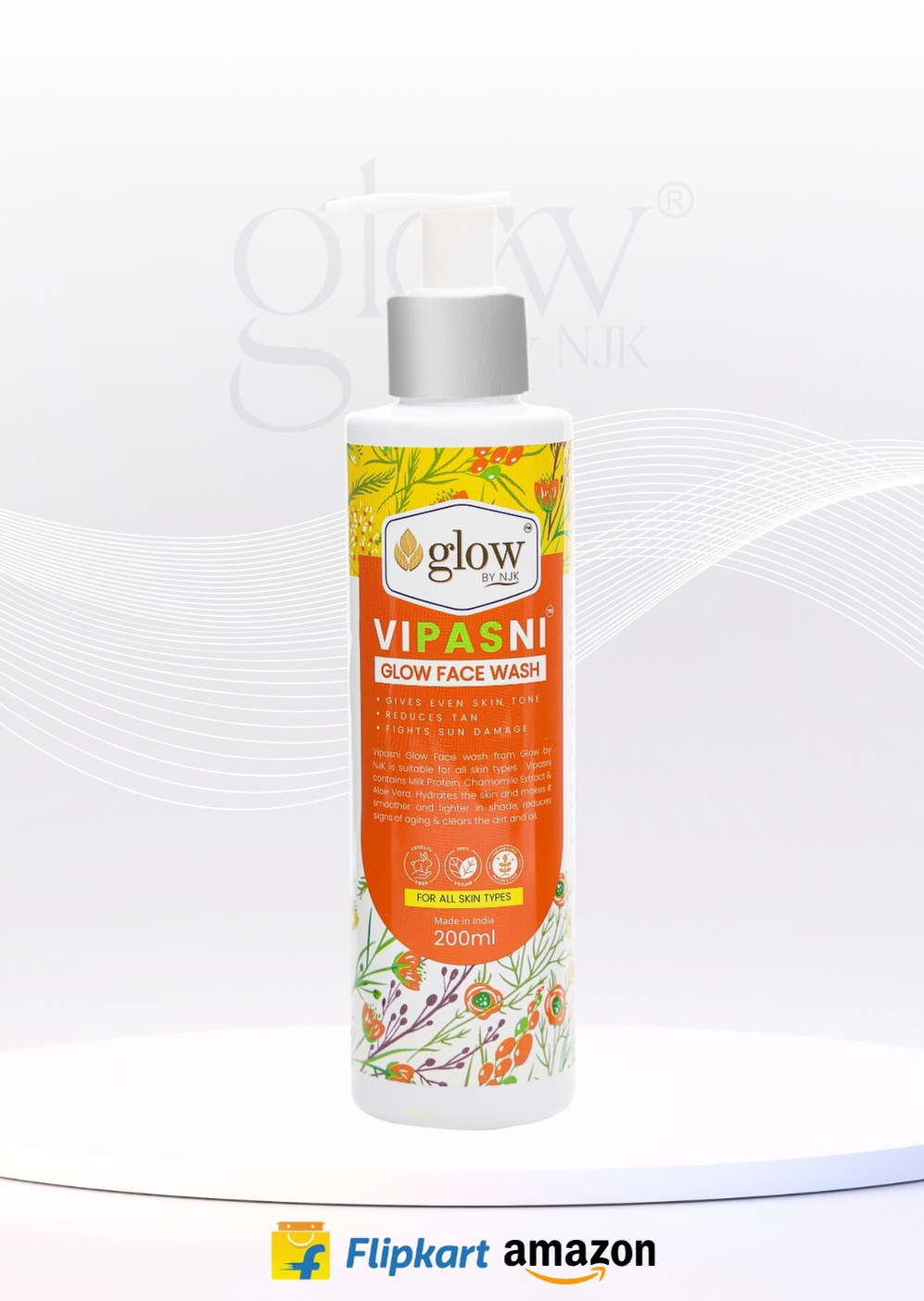 It helps in minimizing tanning and sun damage, thereby giving you a bright skin tone. This face wash is ideal for any type of skin. It pampers, softens, and strengthens the rejuvenation process of your skin. Vipasni Glow Face Wash contains Milk protein, Chamomile extract & Aloe vera. Hydrates the skin and makes it smoother, lighter in shade. It also reduces signs of aging & clears the dirt and oil.